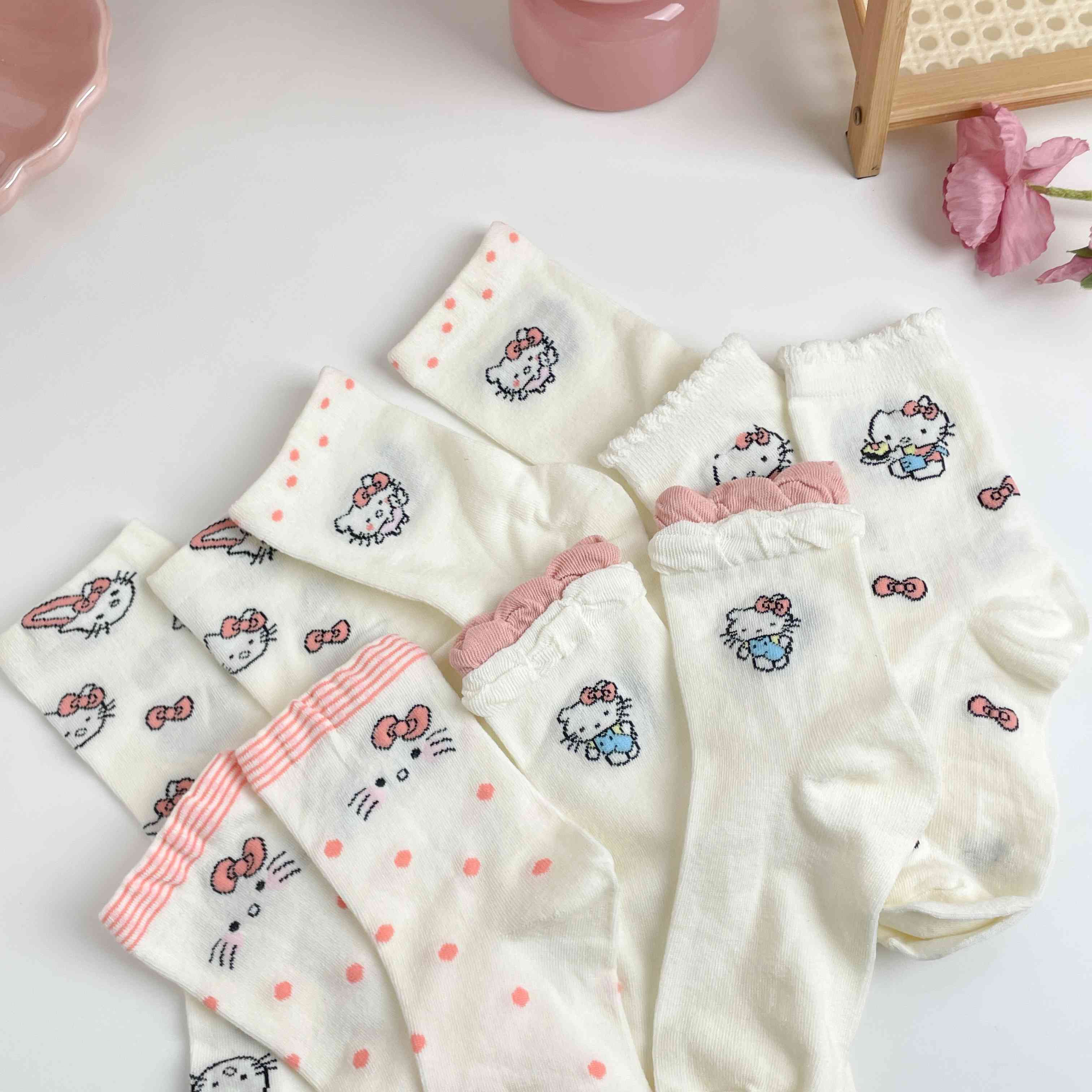 جواريب هيلو كيتي القطنية جواريب بناتية بتصميم لطيف ورسومات هيلو كيتي ، ناعم الملمس