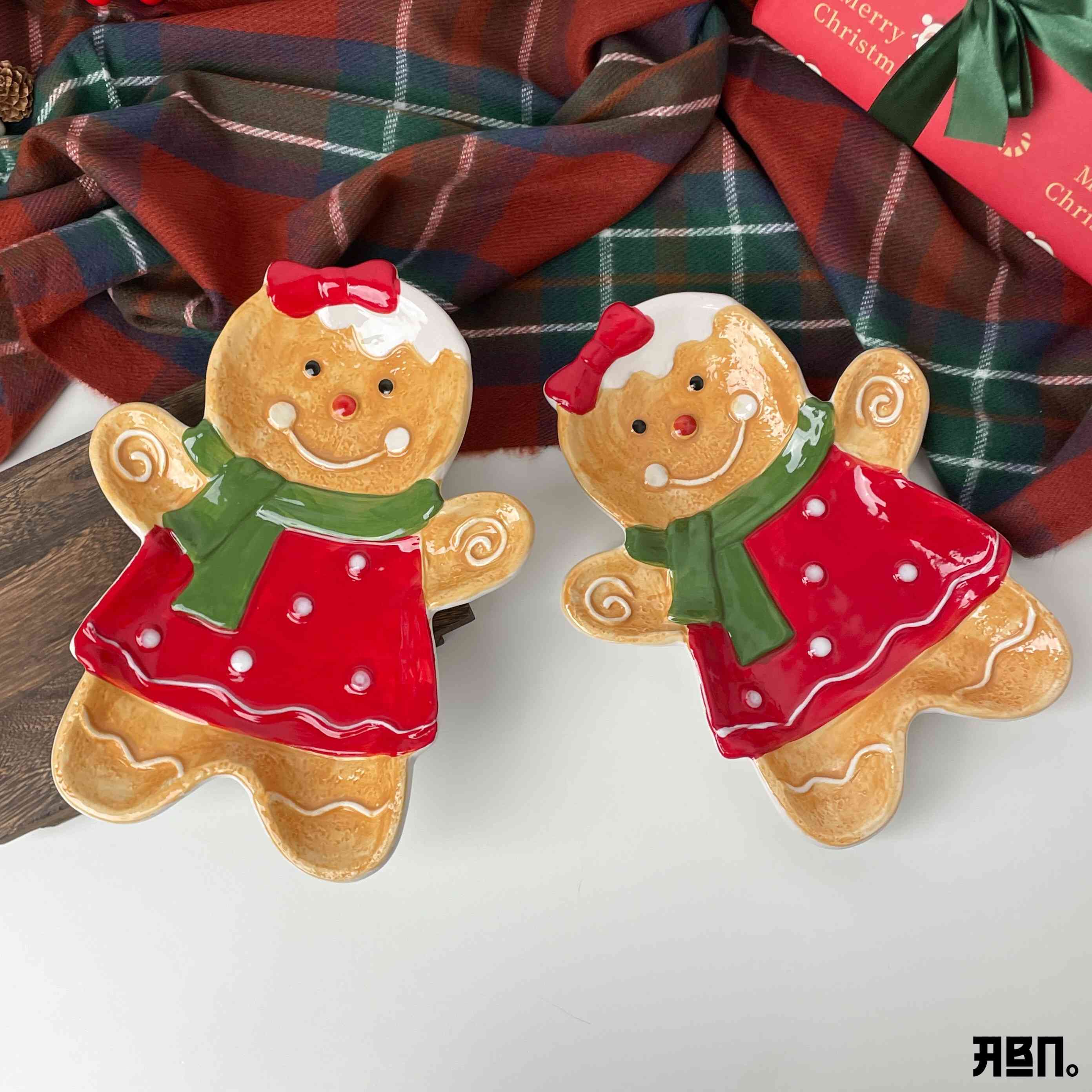 صحن الجنجر مان للكريسماس صحن من السيراميك بتصميم جميل ونقوشات بارزة جميلة حجم كبير