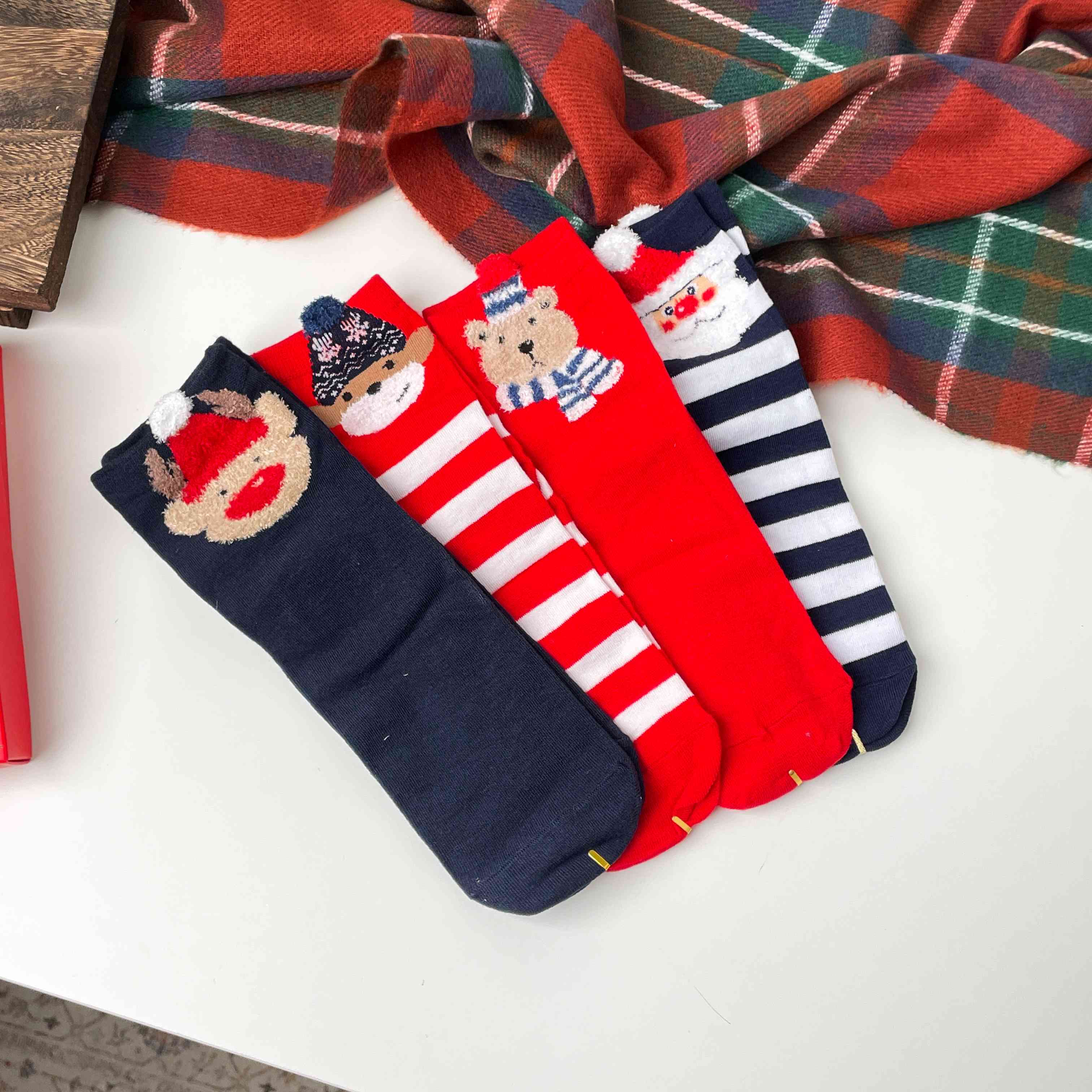 بكج جواريب رباعي للكريسماس بكج جواريب قطنية برسومات الكريسماس متكون من ٤ أزواج ، تناسب لحدد قياس 40
