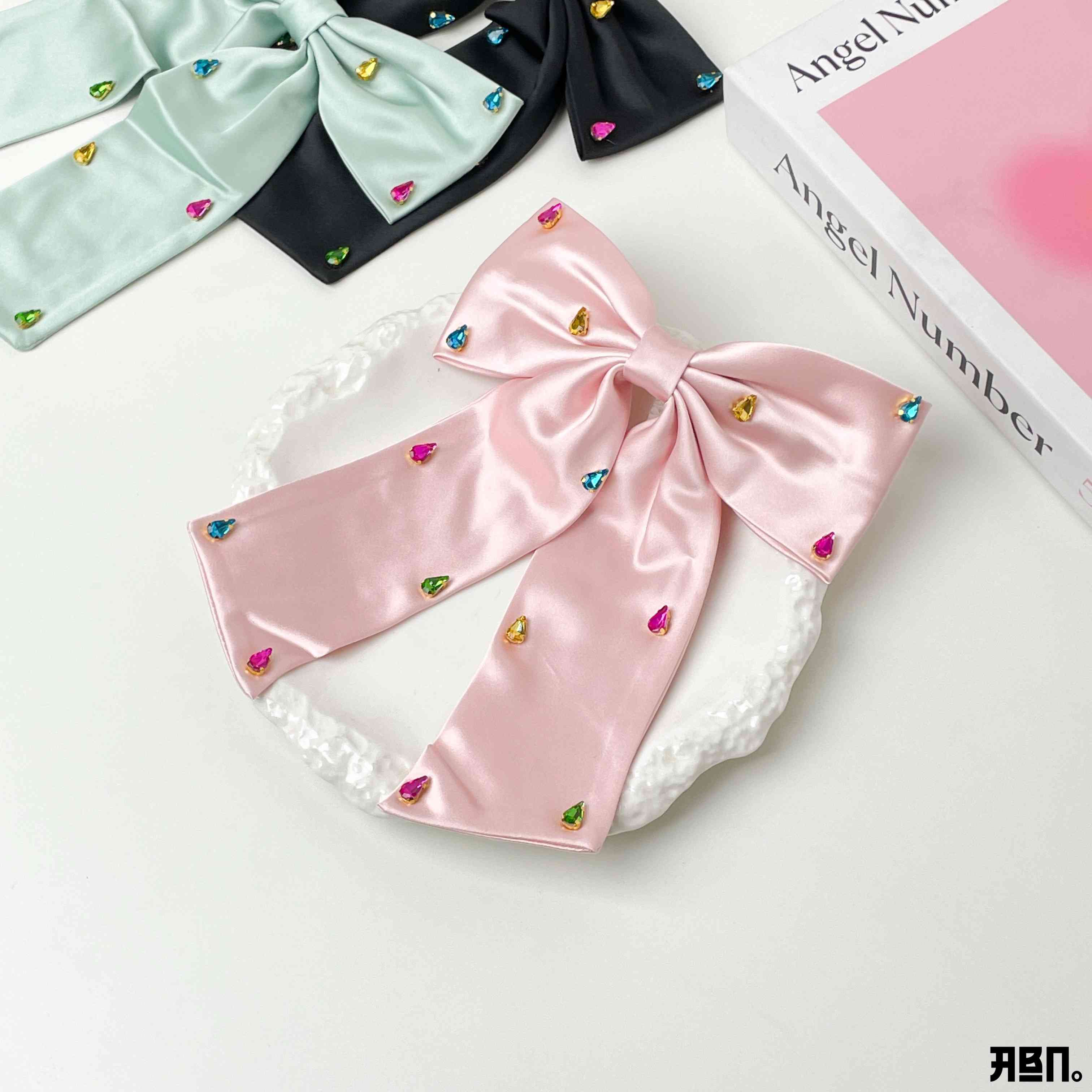 فيونكة شعر ستن بكريستالات ملونة فيونكة شعر بتصميم لطيف