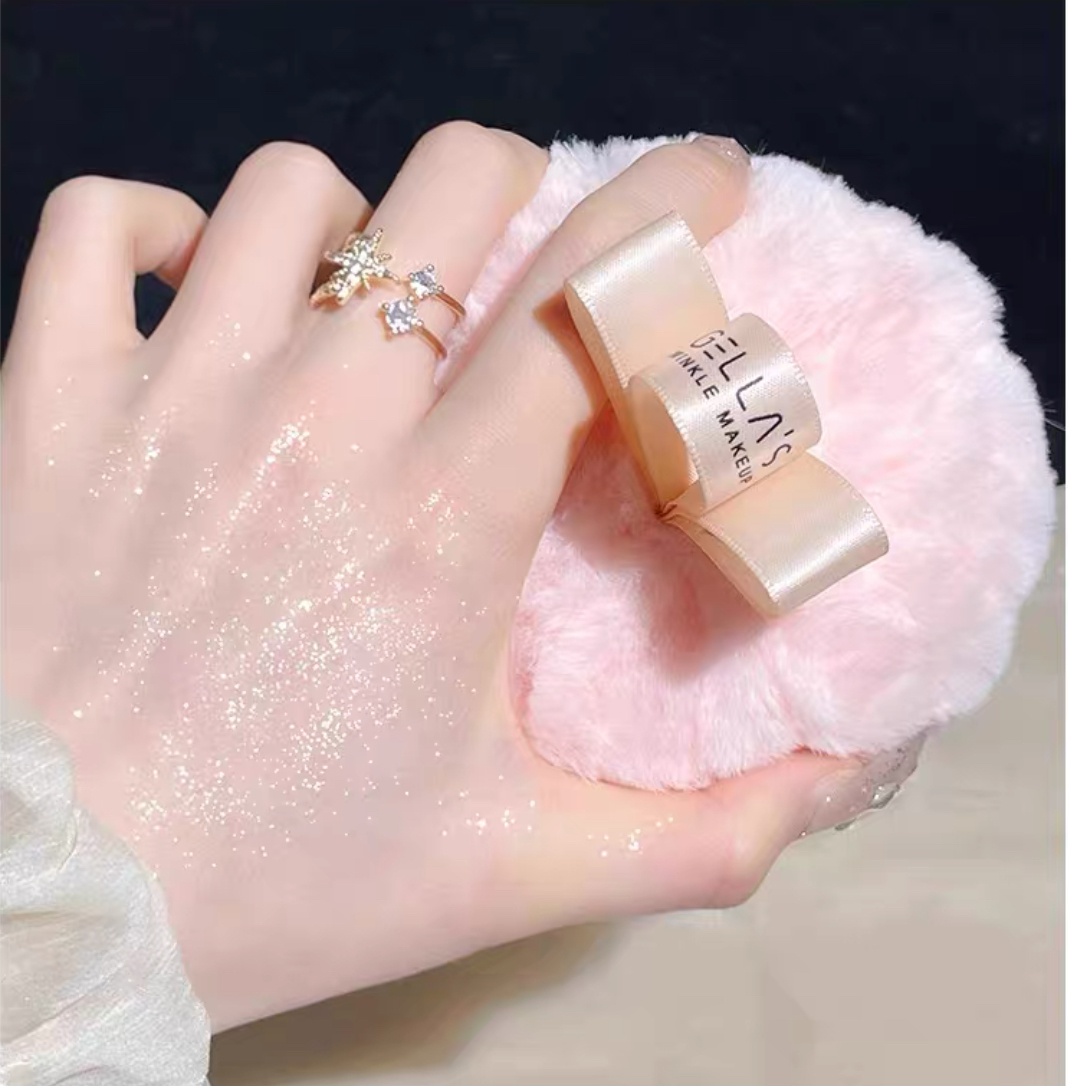 إسفنجة فرو للبودرة الجسم إسفنجة ناعمة بفرو ، لامعه تحتوي على ذرات اللمع التي ستملى جسدك عند الطبطبة تستخدم لتوزيع بودرة الجسم