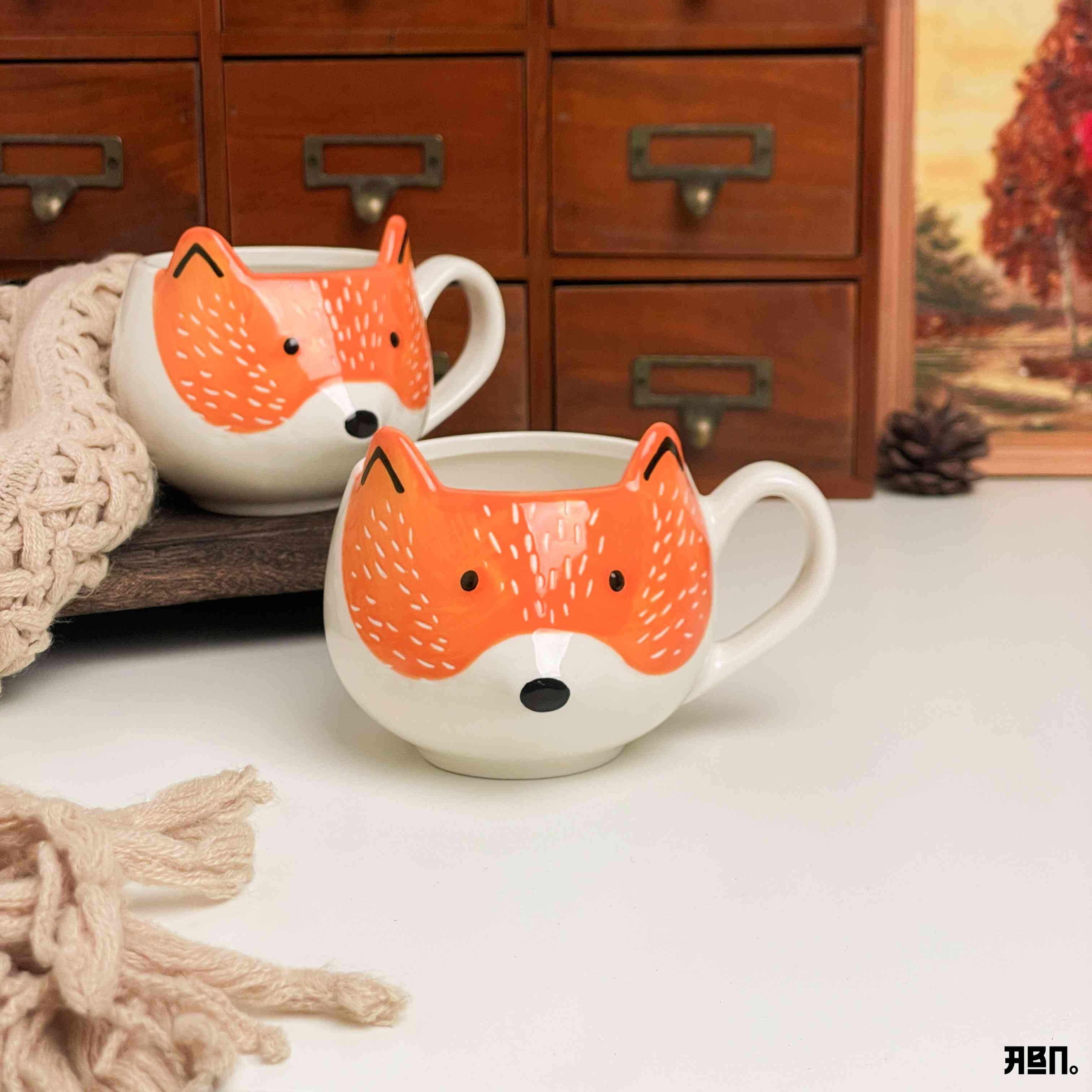 كوب سيراميك برسمة الثعلب تصميم مميزة يناسب الأجواء الخريفية بسعة 400ml