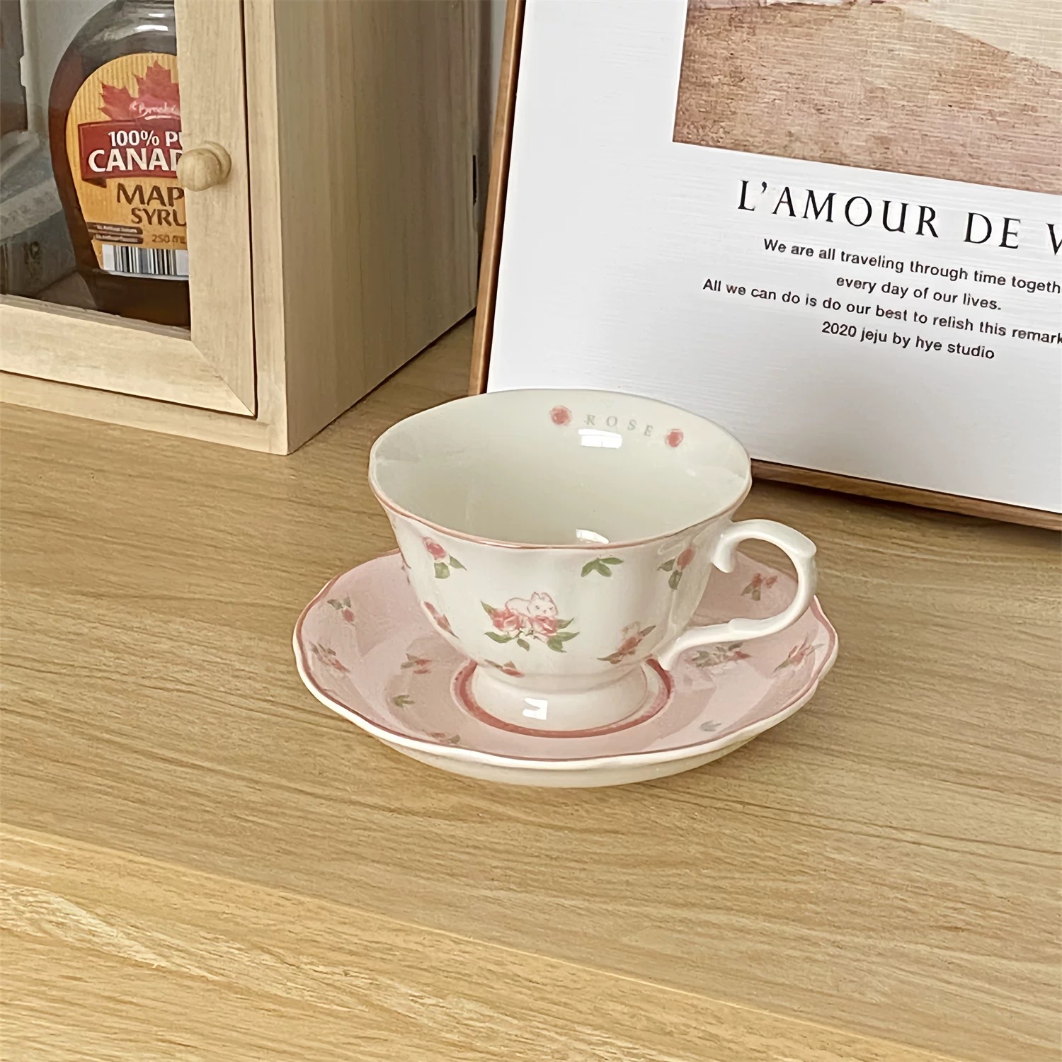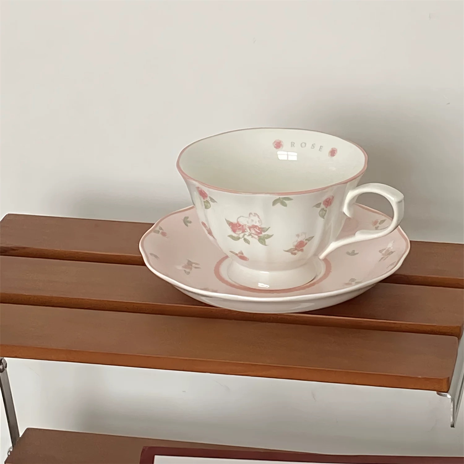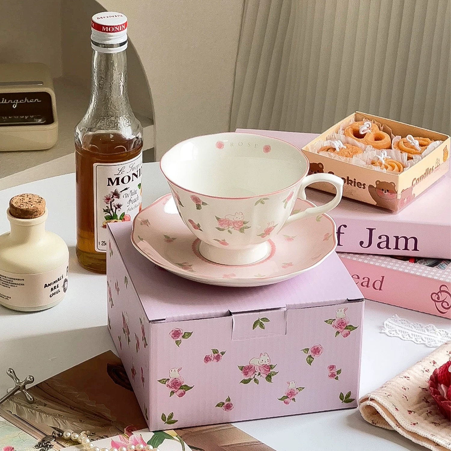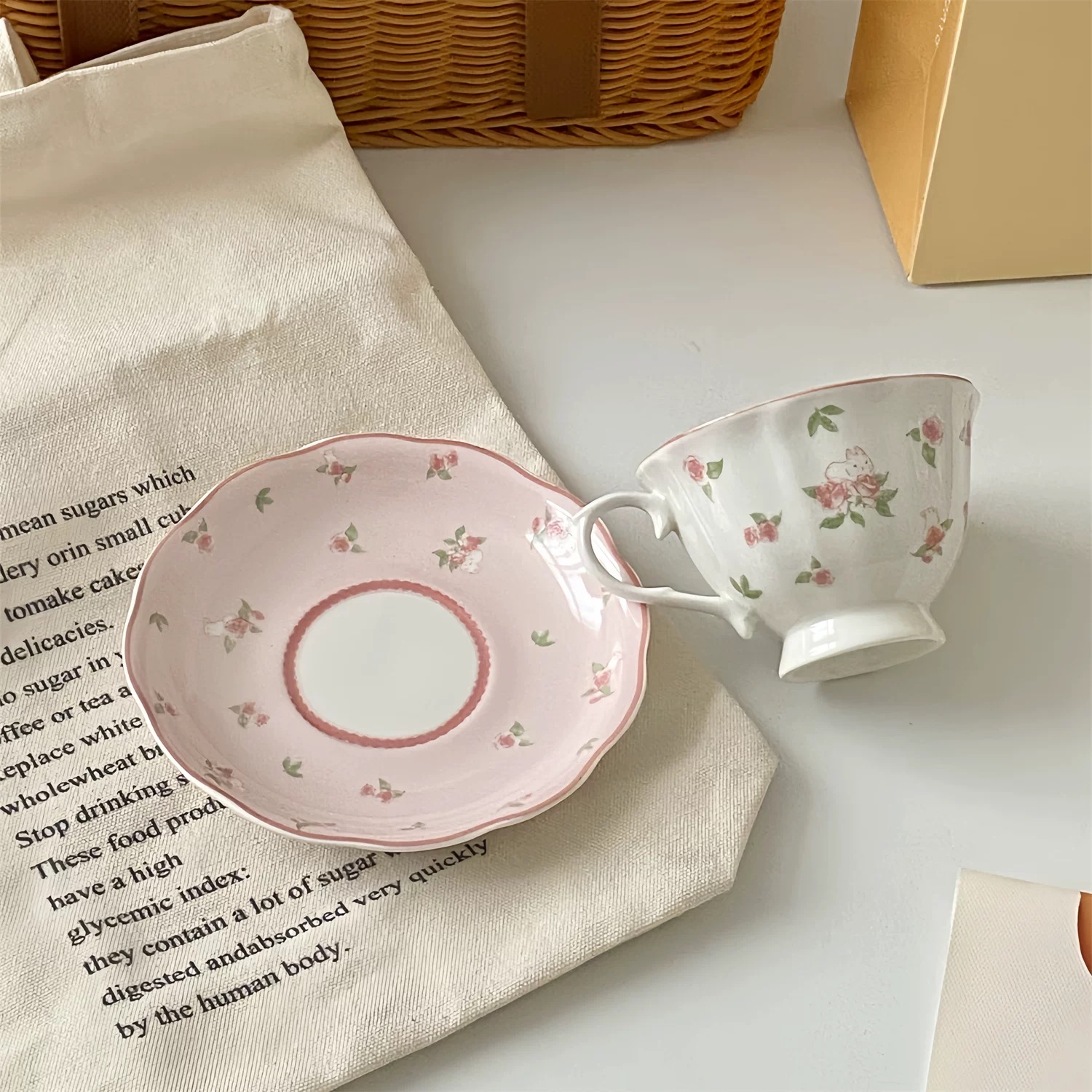 كوب بتصميم أنكليزي ورسومات الزهور والأرنب كوب سيراميك مع صحن بتصميم لطيف هذا الكوب يمكنك وضعه في المايكرويف ، وغساله الصحون السعة :250ml