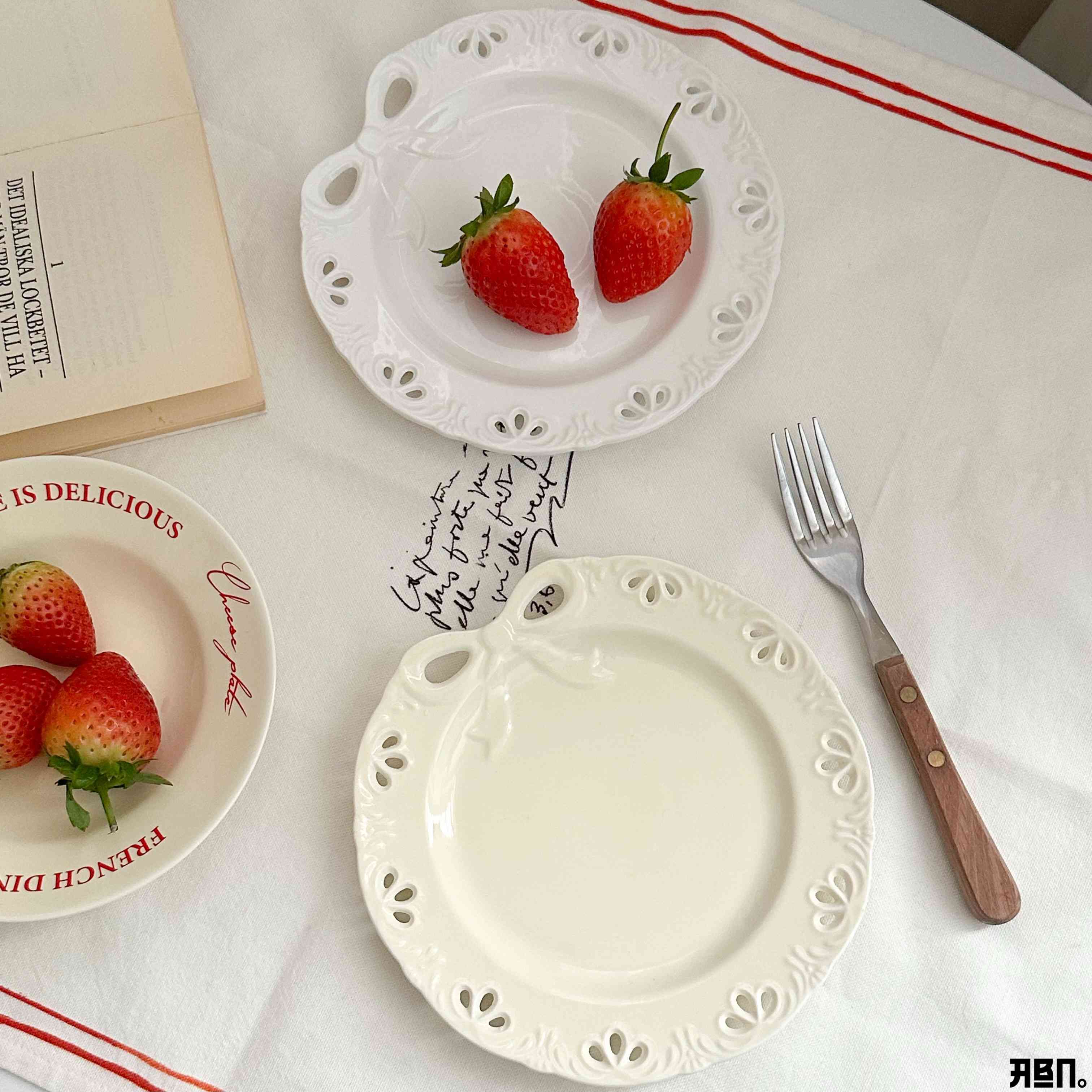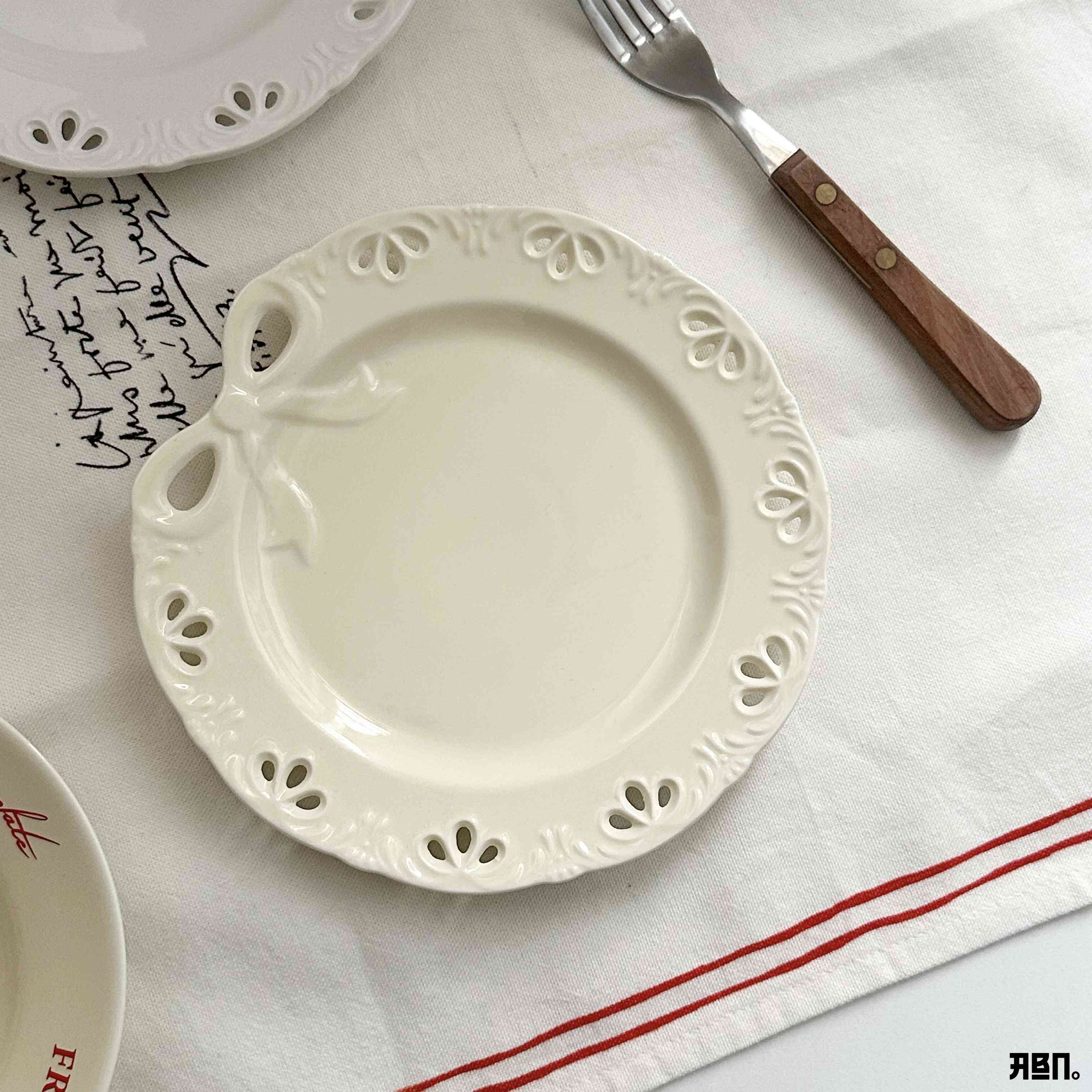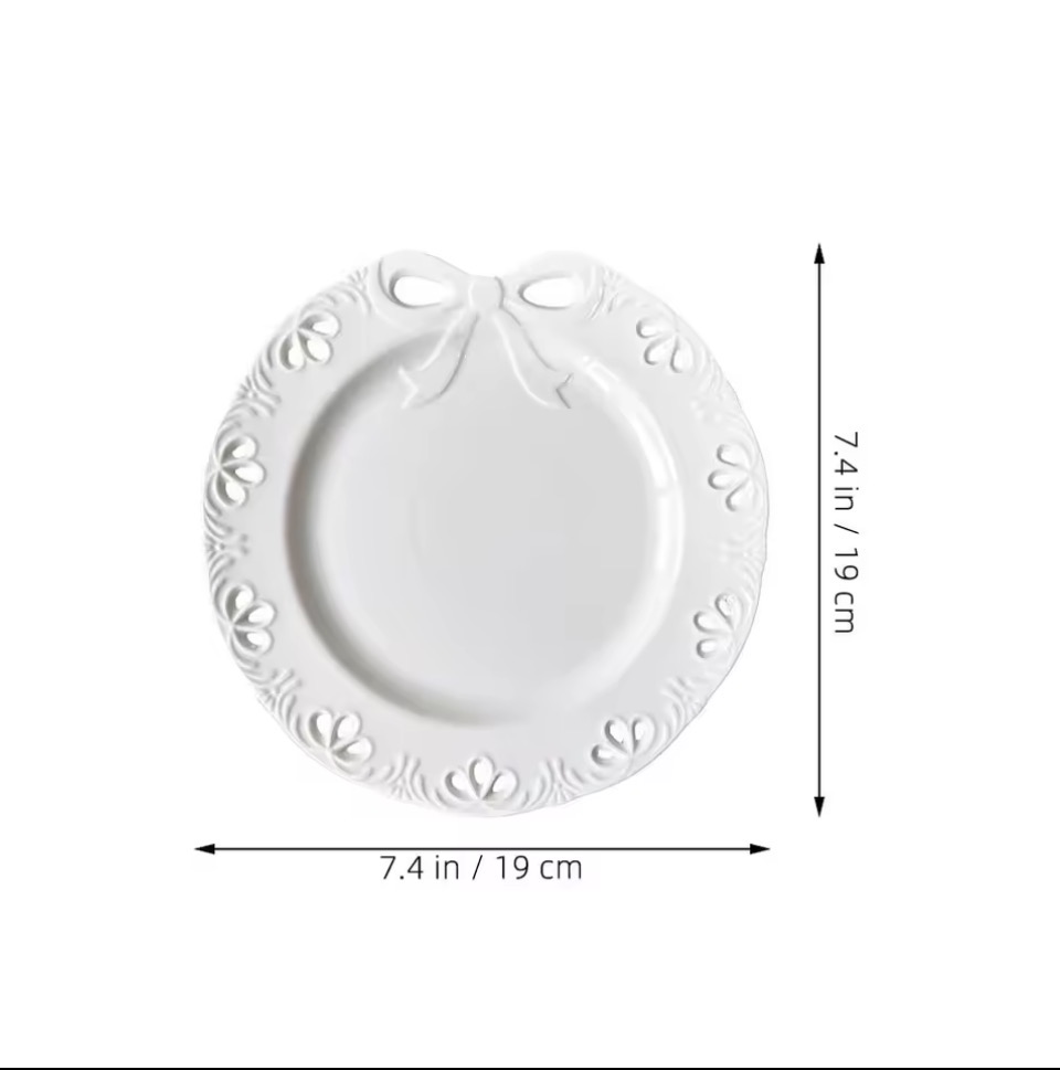 "أضيفي لمسة من الأناقة الباريسية لمائدتك ☕️✨. صحن السيراميك بنقشة الدانتيل البارزة يجمع بين البساطة والجمال الريفي. 19cm مثالي لصور الفطور والتقديمات المميزة."